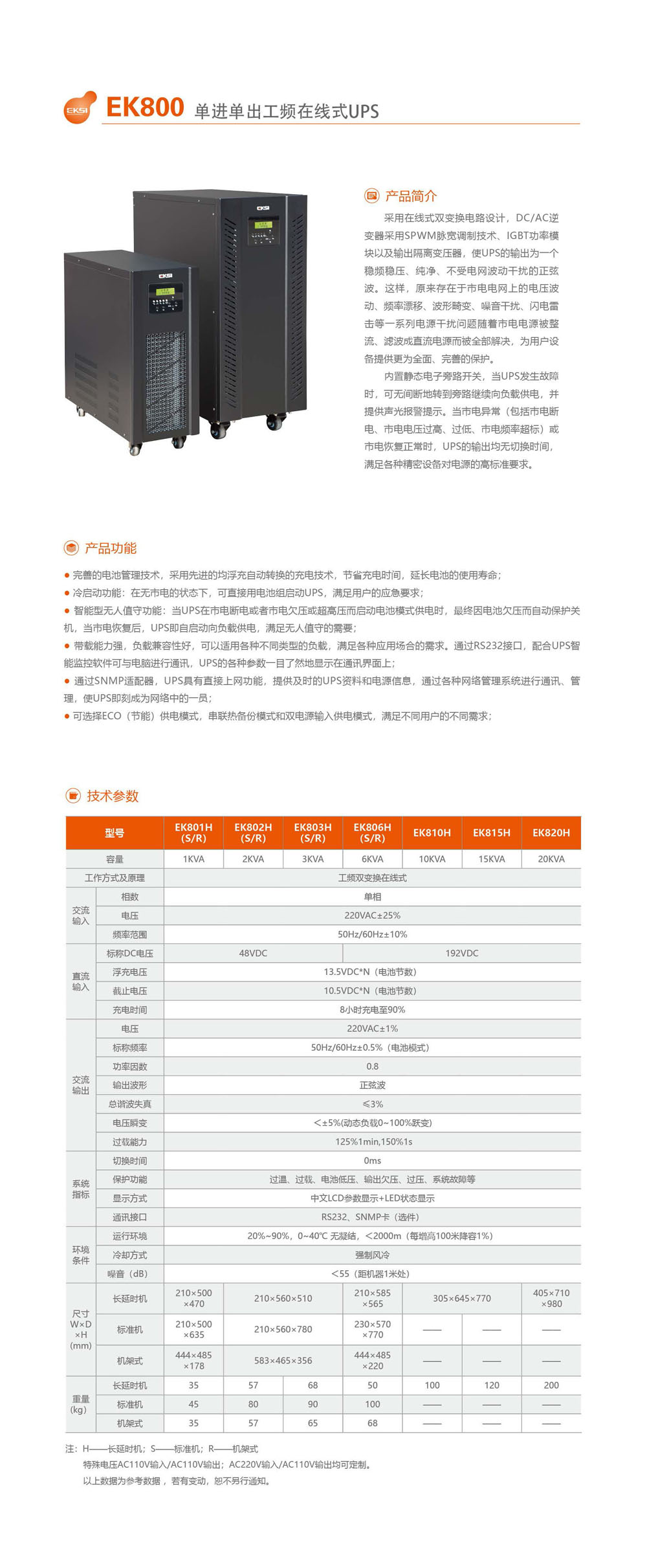 愛(ài)克賽EK800系列塔式單進(jìn)單出工業(yè)級(jí)工頻在線式UPS電源采用在線式雙變換電路設(shè)計(jì),DC/AC逆變器采用SPWM脈寬調(diào)制技術(shù)、IGBT功率模塊以及輸出隔離變壓器,使UPS的輸出為一外穩(wěn)頻穩(wěn)壓、純凈、不受電網(wǎng)波動(dòng)干擾的正弦波電源。